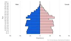 Dominica hatte 2022 73.000 Einwohner.[20] Das jährliche Bevölkerungswachstum betrug + 0,4 %. Zum Bevölkerungswachstum trug ein Geburtenüberschuss (Geburtenziffer: 13,3 pro 1000 Einwohner[21] vs. Sterbeziffer: 8,9 pro 1000 Einwohner[22]) bei. Die Anzahl der Geburten pro Frau lag 2022 statistisch bei 1,6, die der Region Lateinamerika und die Karibik betrug 1,8.[23] Im Jahr 2023 waren 19,4 Prozent der Bevölkerung unter 15 Jahre,[24] während der Anteil der über 64-Jährigen 9,8 Prozent der Bevölkerung betrug.[25]