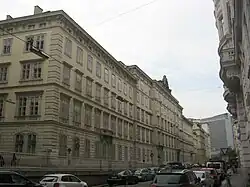 Der große Bau zwischen Biberstraße, Franz-Josefs-Kai und Dominikanerbastei wurde 1906–1907 von Friedrich Schön im späthistoristischen Stil erbaut und 1955 nach Kriegsschäden adaptiert. Er liegt an der Hauptadresse Franz-Josefs-Kai 7–9.
