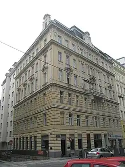 Das späthistoristische Eckhaus zur Falkestraße wurde 1906 von Theodor Bach errichtet. Seine Fassade wird in den Obergeschoßen durch konvexe Erker und durch Wandfelder gegliedert und ist mit späthistoristischem Dekor geziert. Im Inneren sind das marmorverkleidete Foyer mit Stuccolustro-Applikationen, der Treppenlauf mit Marmorpfeiler und Marmorbrüstung und die Deckenleuchter bemerkenswert.