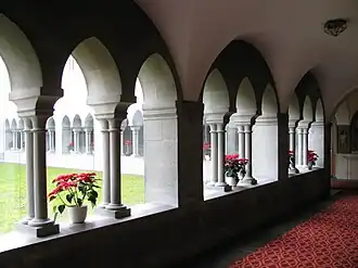Die ehemalige Kirche wird als Festsaal des Hotels genutzt. Die Märtyrer-Fresken sind noch erhalten.[20] In der Vorhalle, die an den Westflügel des Kreuzgangs angebaut war, befand sich ein etwa 6 m langes Wandgemälde mit einem Totentanz. Die vorhandenen Reste wurden 1965 beim Umbau des Hotels hinter der Rückwand der Empfangshalle zugemauert.[21]