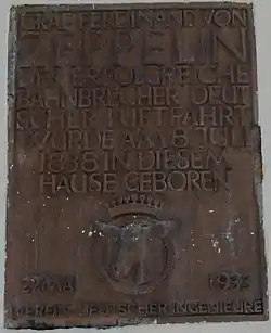 Ferdinand Zeppelin wurde am 8. Juli 1838 auf der Dominikanerinsel in Konstanz im heutigen Inselhotel geboren.[17]