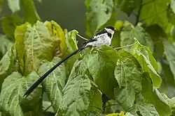 Die Dominikanerwitwe (Vidua macroura) ist eine in Afrika beheimatete Vogelart aus der Familie der Witwenvögel (Viduidae), bei denen das Männchen in der Fortpflanzungszeit vier stark verlängerte Steuerfedern hat.
