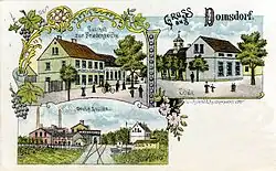 Nach dem Bau der Turbinenzentrale der Brikettfabrik Louise im Jahre 1908 wurde 1911 auch mit der Elektrifizierung von Domsdorf begonnen. Auch die Schule entstand im Jahre 1911 mit 2 Klassenräumen und 2 Lehrerwohnungen.