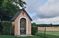 Die Kapelle mit dem offenen Rundbogenportal ist etwa 2 bis 3 Meter hoch. Über dem Bogen der Frontseite ist ein Kruzifix angebracht. Im unteren Teil der Gittertür steht: AVE M (für Ave Maria).