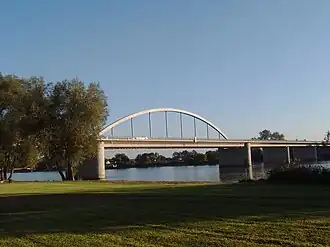 - Szent-László-Brücke, (Autobahn M9), 2003 erbaut, Flusskilometer 1498,80