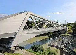 Erdberger Steg errichtet an der Stelle der letzten Donaukanalfähre (Schiff im Bild: Twin City Liner) -