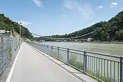 - ↑ a b Franz Sempelmann, Sebastian Stöcklegger, Mathias Widmayer: Die Hängebrücke der A 26 in Österreich. In: Brückenbau. Nr. 1–2, 2022, S. 100–109 (issuu.com).