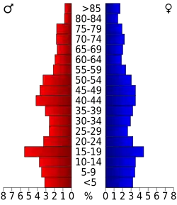 25,3 Prozent der Bevölkerung waren unter 18 Jahre alt. 11,8 Prozent zwischen 18 und 24 Jahre, 24,7 Prozent zwischen 25 und 44 Jahre, 22,0 Prozent zwischen 45 und 64 Jahre und 16,2 Prozent waren 65 Jahre alt oder älter. Das Durchschnittsalter betrug 37 Jahre. Auf 100 weibliche Personen kamen 98,6 männliche Personen. Auf 100 erwachsene Frauen ab 18 Jahren kamen 96,2 Männer.