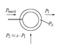 Geht man von einer verlustlosen Übertragung aus, ist die Leistung im Läufer, , proportional zum Schlupf und der Ständerwirkleistung . Bei der synchronen Drehzahl dreht sich also auch je nach Betriebsart der Wirkleistungsfluss im Läufer um.