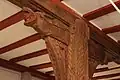 Der Dachreiter wurde zu einem unbekannten Zeitpunkt ergänzt, die in Fachwerk ausgeführte Gebäudeerhöhung stammt aus dem 17. oder 18. Jahrhundert. Die stimmungsvolle spätgotische Ausgestaltung mit aufwendigen Schnitzereien (Drachen, Fratzen, Heiligenköpfe) und den aus dem 15. Jahrhundert stammenden Wandgemälden des Chorraums gilt als kunstgeschichtlich bedeutsam. Die Malereien stellen insbesondere das Jüngste Gericht dar, dazu Passionsszenen und Szenen aus Heiligenlegenden. Die barocke Kanzel wurde 1734 gefertigt.