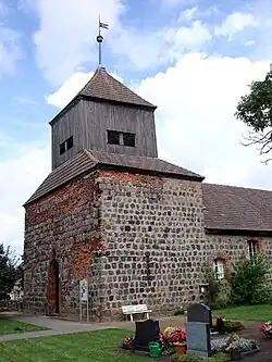 Die Saalkirche entstand Mitte des 14. Jahrhunderts vorwiegend aus Feldsteinen. Sie besteht aus einem kurzen Langhaus, einem eingezogenen Chor im Osten und einem Kirchturm in Breite des Langhauses im Westen. Bei den Umbauten 1723 wurde dem Pyramidendach des Kirchturms einen verbretterten Aufsatz eingefügt, der die Turmuhr beherbergt.