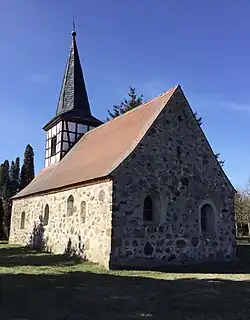 Die aus Feldsteinen errichtete Kirche ist in ihrem Kern spätromanisch und entstand vermutlich Ende des 13. Jahrhunderts. Der kleine Bau mit rechteckigem Grundriss wurde im Jahr 1867 nach Westen hin verlängert. Auf dem westlichen Abschluss entstand ein in Fachwerkbauweise gebauter Dachreiter. In der Südseite ist eine rundbogige Fensteröffnung in ursprünglicher Gestaltung erhalten, auf der Nordseite ist ein vermauertes Portal aus der Zeit der Spätgotik zu erkennen.