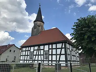Das Bauwerk wurde aus Fachwerk errichtet. Der Chor ist gerade und nicht eingezogen. An der Ostseite sind zwei hochrechteckige Fenster, darüber mittig ein kleineres, ebenfalls hochrechteckiges Fenster.