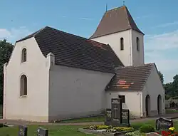 Auf dem Kirchhof befindet sich das Gemeinschaftsgrab von Gefallenen einer in der Nachbarschaft eingesetzten Flakbatterie. An sie erinnert eine Gedenktafel mit der Inschrift: In Erinnerung an unsere Kameraden der Flakbatterie 3/226.