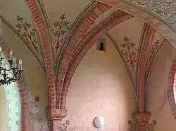 Ungewöhnlich reich ist die Ausstattung im Innenraum, den eine flache Holzbalkendecke abschließt.