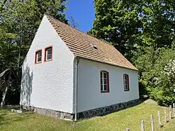 Das Bauwerk wurde auf einem Sockel aus unbehauenen und nicht lagig geschichteten Feldsteinen errichtet und besteht im Wesentlichen aus Mauersteinen, die anschließend verputzt wurden. An der Ostseite sind im Giebel zwei gedrückt-segmentbogenförmige Fenster, deren Fasche durch einen rötlichen Anstrich nochmals betont wurden. An der Nordseite des Kirchenschiffs sind zwei, an der Südseite drei große und ebenfalls gedrückt-segmentbogenförmige Fenster. Der Zugang erfolgt von Westen durch einen kleinen Vorbau, in den eine ebenfalls gedrückt-segmentbogenförmige, hölzerne Pforte eingelassen ist. Im Giebel des Vorbaus ist ein Kreuz. Vorbau und Schiff tragen ein schlichtes Satteldach; am östlichen Dachfirst ist ein Kreuz.