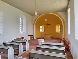 Zur Ausstattung der Kirche gehört ein Altarkruzifix von 1838. Das Kruzifix ist aus Gusseisen und farbig gefasst. Die Bronzeglocke stammt aus dem ausgehenden 14. Jahrhundert.