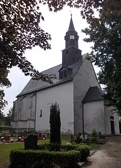 Die Kirche ist eine romanische Saalkirche aus Bruchsteinmauerwerk, die um das Jahr 1500 mit einem dreiseitig geschlossenen Chor und einer Sakristei versehen wurde. An der Nordseite ist ein romanisches Rundbogenfenster erhalten, an der Südseite ein spätromanisches Rundbogenportal, das vermutlich später verändert wurde. Der Dachreiter wurde 1841 von Gottlob Schurig erbaut.