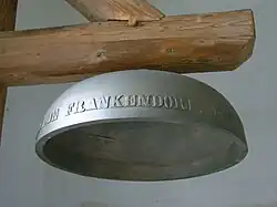 Im Kirchenvorraum befindet sich heute die 1868 gegossene unbezeichnete Bronzeschale mit den Worten: /GEMEINDE FRANKENDORF.1868/.[1]