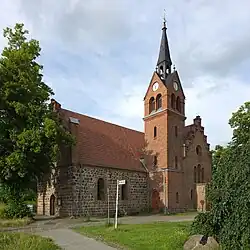 Im Jahr 1242 wurde das um 1230 entstandene Angerdorf erstmals urkundlich erwähnt. Das sorgfältige Feldsteinquadermauerwerk und die Reste von Rundbögen weisen die Kirche als spätromanischen Bau aus, worauf auch die ursprünglich vorhanden gewesene Apsis hindeutet. Es ist also eine Bauzeit zwischen 1250 und 1260 anzunehmen. Das Dorf hatte vier Pfarrhufen und eine Kirchhufe.