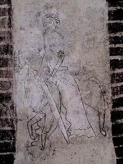 Das Kirchenschiff hat eine flache Holzdecke, die wohl später erneuert wurde, aber mit der mittelalterlichen Wandbemalung harmonisiert. Unterhalb der Flachdecke befindet sich ein Ornamentband aus Palmetten- und Dreieckmotiven. Während der Restaurierung 1968/69 und 1972 wurden die 1872 mit einer neugotischen Ausmalung überdeckten, teilweise erhaltenen Wandmalereien aus der Bauzeit mit einem nur noch schemenhaft erkennbaren, von zwei Engeln getragenen Gemmenkreuz in der Apsis und der Ritzzeichnung eines Ritters im Triumphbogen freigelegt. Dabei handelt es sich um das wohl älteste Bild eines Ritters in Mecklenburg. Vermutlich wurde hier dem Stifter der Kirche ein Denkmal gesetzt.