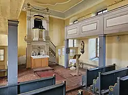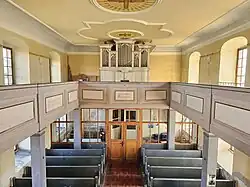 Nach einem Blitzschlag 1845 wurde die Empore eingebaut. Eine schadhafte Figur von Maria und dem Jesuskind ist wohl ein ehemaliges Gnadenbild aus der Vergangenheit des Gotteshauses. Die Orgel auf der Empore stammt von Georg Christoph Hofmann aus Neustadt an der Heyde aus dem Jahr 1837.[1] Sie verfügt über 10 Register auf einem Manual und dem Pedal.[2]
