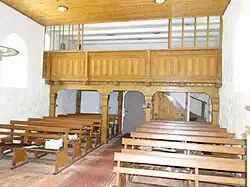 Die Empore an der Westwand ohne Orgel wurde zur Nutzung als Winterkirche durch eine Glasscheibe vom Kirchenraum getrennt. Die zerstörte Westempore stammte von 1694.