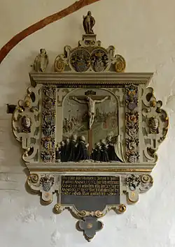 An der Nordseite des Chorraums ist ein Grabepitaph von Berndt von Bülow und seiner Frau Elisabeth Viereggen befestigt, das nach dem Tod des Berndt von Bülow angefertigt wurde. Dargestellt sind die Eheleute mit ihren sechs Töchtern und fünf Söhnen. Neben dem Vater tragen über ihren Köpfen zwei Söhne und eine Tochter ein schwarzes Kreuz, was auf ihren früheren Tod schließen lässt. Die Familie betet den gekreuzigten Jesus an. Im Hintergrund sieht man zwei Reiter, die sich einer Stadt nähern. Die Restaurierung dieser Tafel wurde unter anderem durch den bekannten Nachkommen Vicco von Bülow unterstützt.[1]