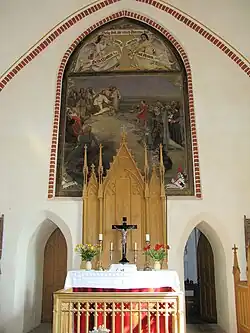 Die einheitlich neugotische Ausstattung von 1862 besteht aus einem Altar mit darüber angeordnetem Wandbild aus dem Jahr 1920 von Fritz Greve mit der Bergpredigt, einer schlichten Kanzel und der Westempore mit Orgel.