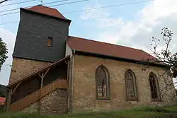 Die Kirche wurde bei einem Brand im Jahre 1637 zerstört. Das Gotteshaus, besonders das Kirchenschiff, ist ein vollendeter Neubau aus dem Jahr 1856, in das Bauteile aus der Vorgängerkirche einbezogen worden sind. Sie ist ein einschiffiges Gotteshaus mit eingezogenen, langrechteckigem Chorturm aus frühgotischer Zeit. Der obere Teil ist bei einer Erneuerung mit schieferverkleideten Fachwerk und Walmdach errichtet worden. Im Langhaus lassen zweizonige frühgotische Lanzettfenster an der Ost- und Südseite (heute ist die Südseite zugemauert) und ein spätgotisches Vorhangbogenfenster mit Kehlen und Leisten das Innere der Kirche erstrahlen.