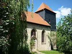 Die Dorfkirche bestand wohl schon laut Baufunden bereits zur urkundlichen Ersterwähnung des Dorfes 1252. Aus dieser Zeit stammt das hohe, schmale Lanzettfenster an der Chorostseite und das Kreuzgewölbe im Chor.