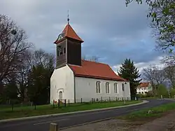Das verputzte Langhaus der Saalkirche wurde 1678 erbaut. Der eingezogene Anbau im Osten in der Art eines Chores und der verbretterte, mit einem Pyramidendach bedeckte Dachturm, der ist sich im Westen aus dem Satteldach des Langhauses erhebt, entstanden 1824. Die Turmuhr befindet sich im Pyramidendach. Im Glockenstuhl hängen zwei spätmittelalterliche Kirchenglocken. Der Innenraum ist geprägt von der Renovierung 1954/55. Die Orgel mit 7 Registern auf einem Manual und Pedal wurde 1957 von Alexander Schuke Potsdam Orgelbau hinter den Prospekt der 1723 von David Baumann gebauten Orgel gebaut.[1]