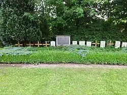 Auf dem umgebenden Friedhof stehen ein Grabkreuz aus dem Jahr 1828 sowie weitere gusseiserne Kreuze aus dem 19. Jahrhundert. Am östlichen Ende befindet sich eine Gedenkstätte für 22 Jugendliche. Sie starben am 26. April 1945, als eine Panzerfaust in den Händen ihres Ausbilders in einem Wehrlager im benachbarten Jeeser explodierte. Die Beisetzung fand am 28. April 1945 statt.