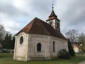 Am 21. August 2022 wurde vor der Kirche ein Mahnmal des Holzbildhauers Hans-Ulrich Kittelmann enthüllt, das an einen großen Waldbrand im August 2018 erinnern soll. Es ergänzt eine Gedenktafel für die Einsatzkräfte, die seinerzeit ein Übergreifen der Flammen auf das Dorf verhindert hatten.[7]
