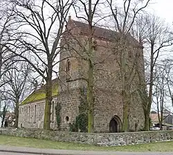 Das Bauwerk entstand im Wesentlichen aus Feldsteinen, die behauen und lagig geschichtet wurden und damit die Entstehung im 13. Jahrhundert unterstreichen. Der Chor hat einen rechteckigen Grundriss und ist leicht eingezogen. Am Chorschluss befinden sich drei Rundbogenfenster, von denen das mittlere leicht überhöht ist. Im darüberliegenden Giebel ist ein weiteres, kleineres Rundbogenfenster. An der Nord- und Südseite des Chors sind an jeder Seite eine kleine Pforte sowie je zwei weitere Fenster, die am Übergang zum schlichten Satteldach angeordnet wurden.
