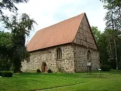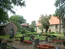 Bei der Kirche handelt es sich um einen rechteckigen Feldsteinbau aus dem 13. Jahrhundert mit Spitzbogenportal auf der Südseite sowie verschiedenen, meist hoch angesetzten spitzbogigen Fenstern. Nach dem Dreißigjährigen Krieg lag die Kirche längere Zeit wüst, bevor sie 1670 wieder genutzt wurde. Der Ostgiebel mit Fachwerk wurde 1775 errichtet, der Westgiebel wurde im 19. Jahrhundert aus Backstein erneuert. 1966 fand eine Sanierung des Innenraums statt. 1980 stürzte der Westgiebel der Kirche ein, dabei wurde die Orgelempore zerstört. Die nötige Reparatur des Gebäudes fand erst 1987 statt. Die Kirche wird seit längerem, meist unter Beteiligung internationaler Jugendgruppen, saniert.