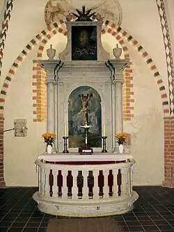 Der Altar und die Kanzel aus dem 18. Jahrhundert sind einfach gestaltet. Die Empore westlich im Kirchenschiff wurde 1750 eingebaut und 1759 von J. E. Bendhusen mit acht Bildern bemalt. Diese zeigen biblische Motive, wie die Opferung Isaaks, Rebekka am Brunnen, Auffindung des Mose im Nil, Daniel unter den Löwen. Bemerkenswert sind Abendmahlskelch und -kanne. Der Renaissance-Kelch des Rostocker Goldschmieds Hans Klein von 1611 ist aus vergoldetem Silber, die Kanne ist aus Zinn und wurde 1747 gefertigt.