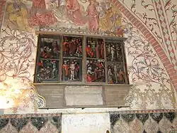 Die 1684 übermalten Flügel zeigen insgesamt zwölf Gemälde aus dem Leben und der Passion Jesu, vier auf der Innenseite mit geöffneten Flügeln und acht bei geschlossenen Flügeln.