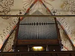 Der Wittstocker Orgelbauer Friedrich Hermann Lütkemüller fertigte 1881 die Orgel (I/P/12). Sie ist eine der wenigen technisch wie optisch vom Stil abweichende Lütkemüller-Orgel. Das Orgelgehäuse stellte Möckel während der inneren Kirchenrestauration 1870 bis 1874 her. Lütkemüller sich hatte schon am 5. März 1873 zum Orgelbau an die Klostervorsteher gewandt, doch vorher war noch die Brüstungsorgel in der Dorfkirche zu Ruest zu fertigen. Er musste dann das einige Jahre leer stehende Gehäuse nutzen und war daher zur zentralen Anlage des Spieltisches gezwungen.[44] Der Orgelprospekt ist jedoch nur eine Attrappe.