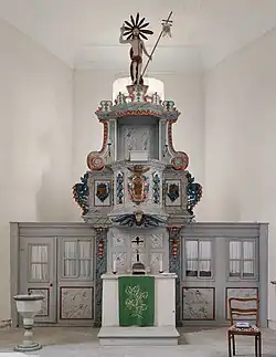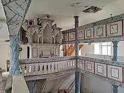 An der Ostseite befinden sich abgetrennte Verschläge mit dem eingebauten Kanzelaltar. Drei- und zweigeschossige Emporen sind an den Längs- und Stirnseiten eingebaut. Die Barockorgel schuf 1745 Justinus Ehrenfried Gerhard aus Lindig. Eine Restaurierung des lange unspielbaren Werkes steht bevor (Stand 2022).[1]