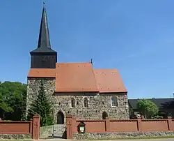 Die Feldsteinkirche wurde in der Mitte des 13. Jahrhunderts erbaut. Die Saalkirche besteht aus einem Langhaus und einem eingezogenen, querrechteckigen Chor im Osten, beide mit Satteldächern bedeckt. Die unteren Geschosse des querrechteckigen Kirchturms im Westen wurden in Breite des Langhauses aus Feldsteinen errichtet und beidseitig mit Pultdächern bedeckt. Darüber wurde er zwischen 1801 und 1815 mit einem aus Brettern verkleideten quadratischen Geschoss aus Holzfachwerk aufgestockt, das den Glockenstuhl beherbergt, in dem zwei mittelalterliche Kirchenglocken hängen, und mit einem schiefergedeckten, achtseitigen Knickhelm bedeckt.