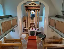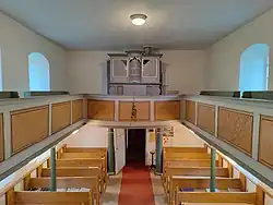 Die Kirche ist mit umlaufender Empore und einem klassizistischen Kanzelaltar ausgestattet.