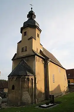 Die einstige Filialkirche von Graitschen ist eine einschiffige romanische Kirche mit eingezogenen querrechteckigen Chorturm und Apsis. Beim Umbau 1718/19 wurde wahrscheinlich auch der schmalere Turmansatz mit geschweifter Haube mit errichtet. Eine Besonderheit sind das Rundbogenfries und eine Lisenen in der Apsis.
