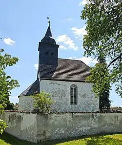 Die kleine innerhalb einer viereckigen teilweise bestehenden Friedhofsmauer befindliche Kirche stammt aus dem 12. Jahrhundert, das Langhaus aus dem 15. Jahrhundert. Die Fenstergewände sind gotisch. Aus dem Jahre 1784 sind die Spitzbögen für die Eingangstür.