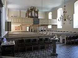 Die Orgel, gestiftet von Sophie Charlotte von Grumbkow, wurde 1738 von Joachim Wagner aus Berlin erbaut. Friedrich Hermann Lütkemüller führte mehrere Veränderungen durch. Zum Ende der 1980er Jahre war das Instrument in einem sehr schlechten Zustand. Das aufwendig gestaltete Gehäuse hatte einen Anstrich mit Ölfarbe erhalten; das Stifterwappen war durch den Holzwurm zerstört, der Spielschrank durch eine Elektroinstallation entstellt. Nachdem die Kirche zum Anfang des 21. Jahrhunderts saniert wurde, wurde 2005 mit der Sanierung der Orgel begonnen. Die Firma Orgelbau Waltershausen stellte dabei die Originaldisposition wieder her.[2] Sie hat heute zehn Register auf einem Manual und Pedal. Die Disposition lautet:[3][4]