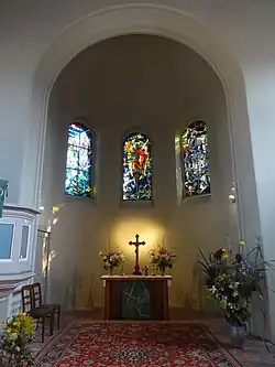 Die Chorfenster mussten nach dem Ende des Zweiten Weltkriegs neu gefertigt werden. Sie entstanden 1960–1962 nach Entwürfen von Lothar Mannewitz. Auf der linken Seite ist der Fischzug Petri aus dem Evangelium nach Lukas (Lukas 5,3–11 ), in der Mitte Jesus Christus aus der Offenbarung des Johannes (Joh 4,2–11 ) und rechts der Auferstandene beim Mahl mit den Jüngern am See aus dem Evangelium nach Johannes (Joh 21,4–14 ) zu sehen.