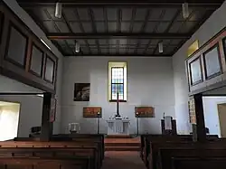 Das Kirchenschiff ist innen schlicht ausgestattet. Die Emporen und der Mittelgang wurden wie im ausgebrannten Schiff wieder eingebaut. Im Altarraum wurden ein Altar mit Kreuz, ein Predigtpult und der Taufstein aufgestellt. Unter den Emporen befindet sich ein Gemeinderaum. Die Patronatsloge wurde als Sakristei umfunktioniert.