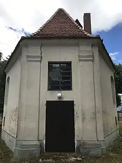 Die Landstraße 711 führt von Nordwesten kommend in östlicher Richtung durch den Ort. Die Kirche steht nördlich der Straße auf einem Grundstück, das im westlichen Bereich mit einem Zaun eingefriedet ist.