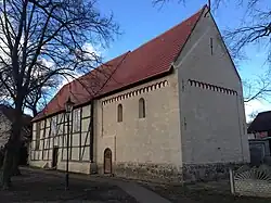 Die von außen schlichte Kirche blickt auf eine wechselvolle Geschichte zurück und hat ihre Wurzeln im 13. Jahrhundert. Von der ursprünglich romanischen Kirche ist nur der Chor aus verputztem Backsteinmauerwerk mit der Priesterpforte und dem Triumphbogen erhalten. Der Rest der Kirche wurde während des Dreißigjährigen Krieges zerstört.