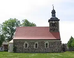 Die rechteckige Feldsteinkirche steht, umgeben von dem großzügig gestalteten Dorffriedhof, auf dem ehemaligen Anger. Nach Einschätzungen der Experten für mittelalterliche Kirchen in der Mark Brandenburg, Theo Engeser und Konstanze Stehr, geht der Ursprungsbau auf das 14. Jahrhundert zurück. Exakte Bestimmungen über das Baujahr und zur Baugeschichte liegen allerdings noch nicht vor und es bleibt auch unklar, wie viel der Bausubstanz der Grundkirche erhalten ist. Ursprüngliche Fenster, die eine genaue Datierung erleichtern würden, sind nicht erhalten. Das mittelalterliche Bauwerk verfügt mit dem Westportal nur über einen Zugang und bekam statt eines Turms einen Dachreiter aus Fachwerk und Ziegeln. Renovierungen fanden in den Jahren 1727/1731 sowie 1871 statt. Die Apsis, die 1871 hinzu kam, ist aus Ziegeln gemauert.